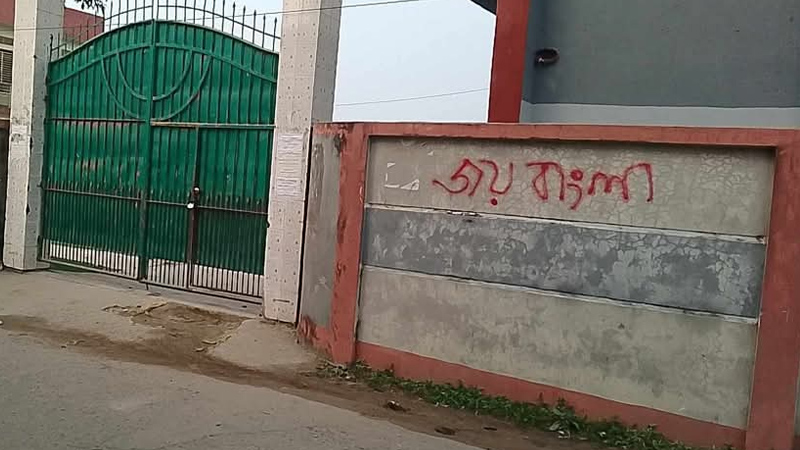 মঙ্গলবার (৩১ ডিসেম্বর) দুপুরে 'জয় বাংলা' লিখাটি স্প্রে পেইন্ট ব্যবহার করে মুছে দেওয়া হয়। পরে দেওয়ালে 'জয় বাংলা' লেখার প্রতিবাদে বিক্ষোভ মিছিল ও প্রতিবাদ সভা করে ছাত্রদল ও যুবদল।